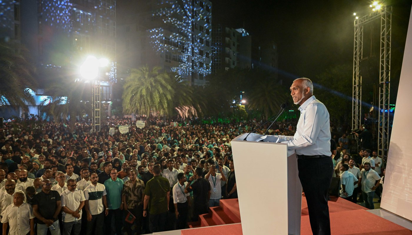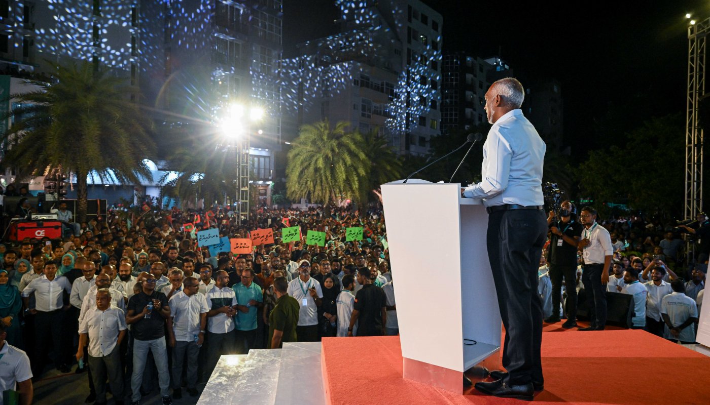 މިރޭގެ ޖަލްސާގެ މައިގަނޑު ބޭނުމަކީ ރައީސް މުއިއްޒުގެ ސަރުކާރަށް އަންނަ ހޯމަ ދުވަހު ދެ އަހަރު ފުރޭއިރު، ސަރުކާރަށް އޮތް ތާއީދު ދައްކާލުން ކަމަށް ޕީއެންސީން ވަނީ ބުނެފަ އެވެ. އާޓިފިޝަލް ބީޗުގައި މިރޭ ބޭއްވި ޖަލްސާގައި ރާއްޖޭގެ ކޮންމެ ރަށަކުންވެސް މީހުން ބައިވެރިވާ ކަމަށް ޕީއެންސީން މައުލޫމާތު ދީފައިވެ އެވެ. އާޓިފިޝަލް ބީޗާއި، މަޖީދީ މަގާއި ބޮޑުތަކުރުފާނު މަގުގައި އެ ސަރަހައްދު އޮތީ އެއްވި މީހުންނާ އެކު ފުރި ތޮއްޖެހިފަ އެވެ. ރައީސް ޑރ. މުއިއްޒުގެ ދެކަނބަލުން އާޓިފިޝަލް ބީޗު ސަރަހައްދަށް ވަޑައިގެންނެވިއިރު އެ ސަރަހައްދުގައި އެއްވެ ތިބި އެތައް ހާސް ބަޔަކު ރައީސް ސަލާމްކުރަމުން ގެންދިޔަ އެވެ. އެ ވަގުތު ރައީސްގެ ދެކަނބަލުންގެ އަރިހުގައި ނައިބް ރައީސް ހުސައިން މުހައްމަދު ލަތީފާއި ޕީއެންސީގެ ޗެއާޕާސަން އަދި ރައްޔިތުންގެ މަޖިލީހުގެ ރައީސް އަބްދުއްރަހީމް އަބްދުﷲ އާއި ރައްޔިތުންގެ މަޖިލީހުގެ ނައިބު ރައީސް އަހްމަދު ނާޒިމްވެސް ތިއްބެވި އެވެ. ރައީސް މުއިއްޒު ބީޗަށް ވަޑައިގެންނެވިއިރު އެތައް ހާސް ބަޔަކު ދިޔައީ މަގުމަތީގައި ގައުމީ ދިދައާ އެކު ތިބެ ރައީސްއަށް ތާއީދުކުރާ ކަމަށް ބުނެ އަޑުއުފުލަމުންނެވެ.