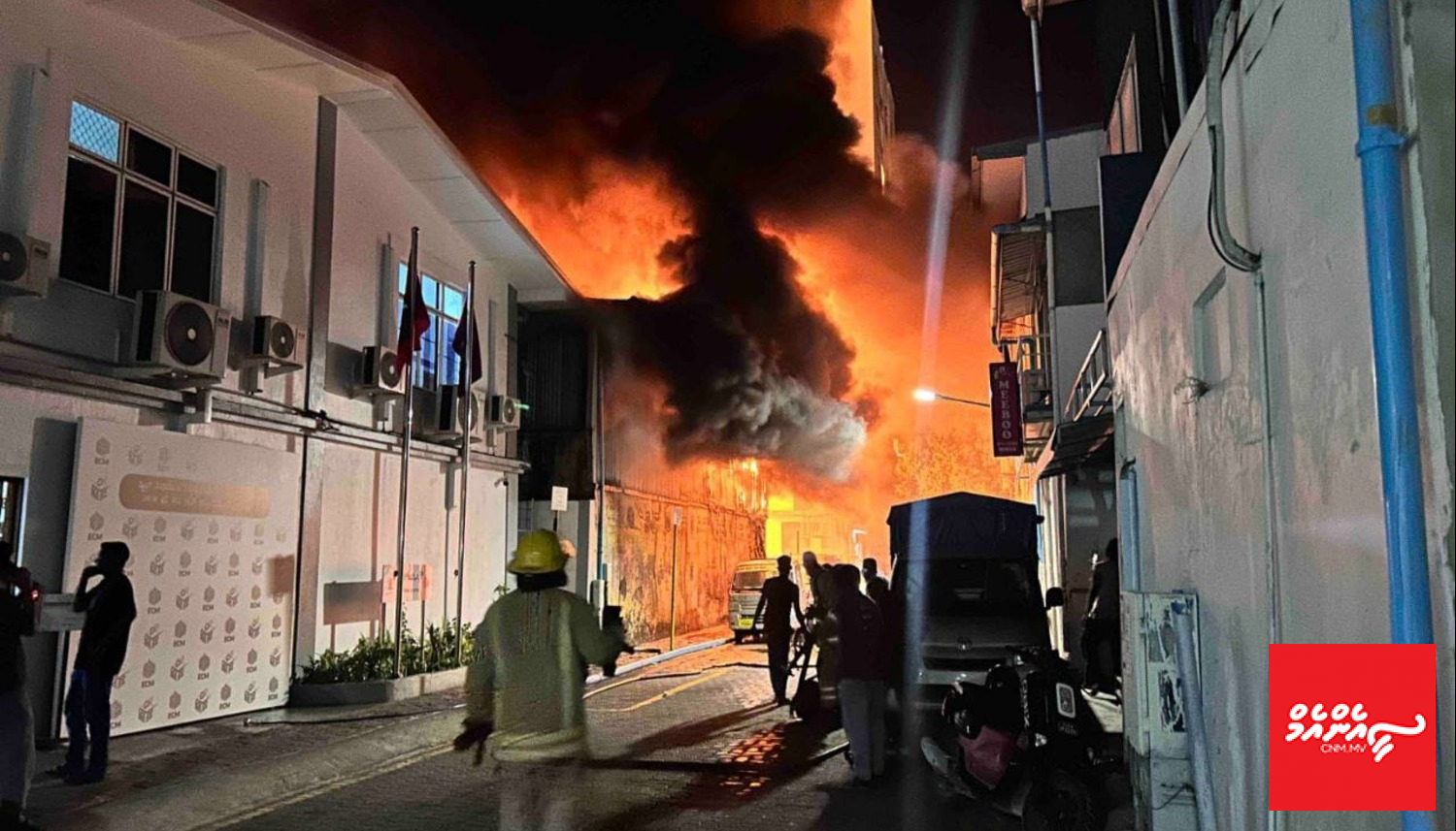 މިރޭ 10:00 ޖަހާކަންހާއިރު ގުދަނުގައި ރޯވި އަލިފާންގަނޑު އަދިވެސް އެއްްކޮށް ނިއްވާލެވިފައެއް ނުވެއެވެ. އަލިފާން ނިއްވުމަށް އެއާޕޯޓްގެ ފަޔާ ވެހިކަލްްވެސް އަންްނަނީ ބޭނުންްކުރަމުންނެވެ.