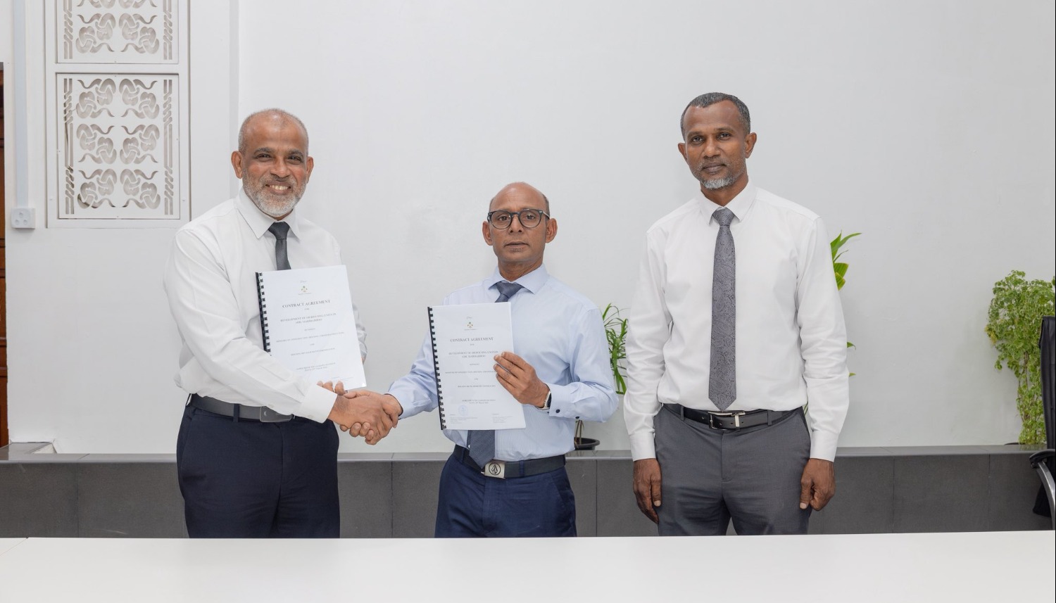 މި އެއްބަސްވުންތަކުގައި ހައުސިން މިނިސްޓްރީގެ ފަރާތުން ސޮއިކުރެއްވީ، ސްޓޭޓް މިނިސްޓަރު އިސްމާއީލް ހަމީދެވެ. އަދި އެޗްޑީސީގެ ފަރާތުން ސޮއިކުރެއްވީ، އެ ކުންފުނީގެ މެނޭޖިން ޑިރެކްޓަރު، ރިޓަޔާޑް ބްރިގޭޑިއާ ޖެނެރަލް އަލީ ޒުހައިރެވެ.