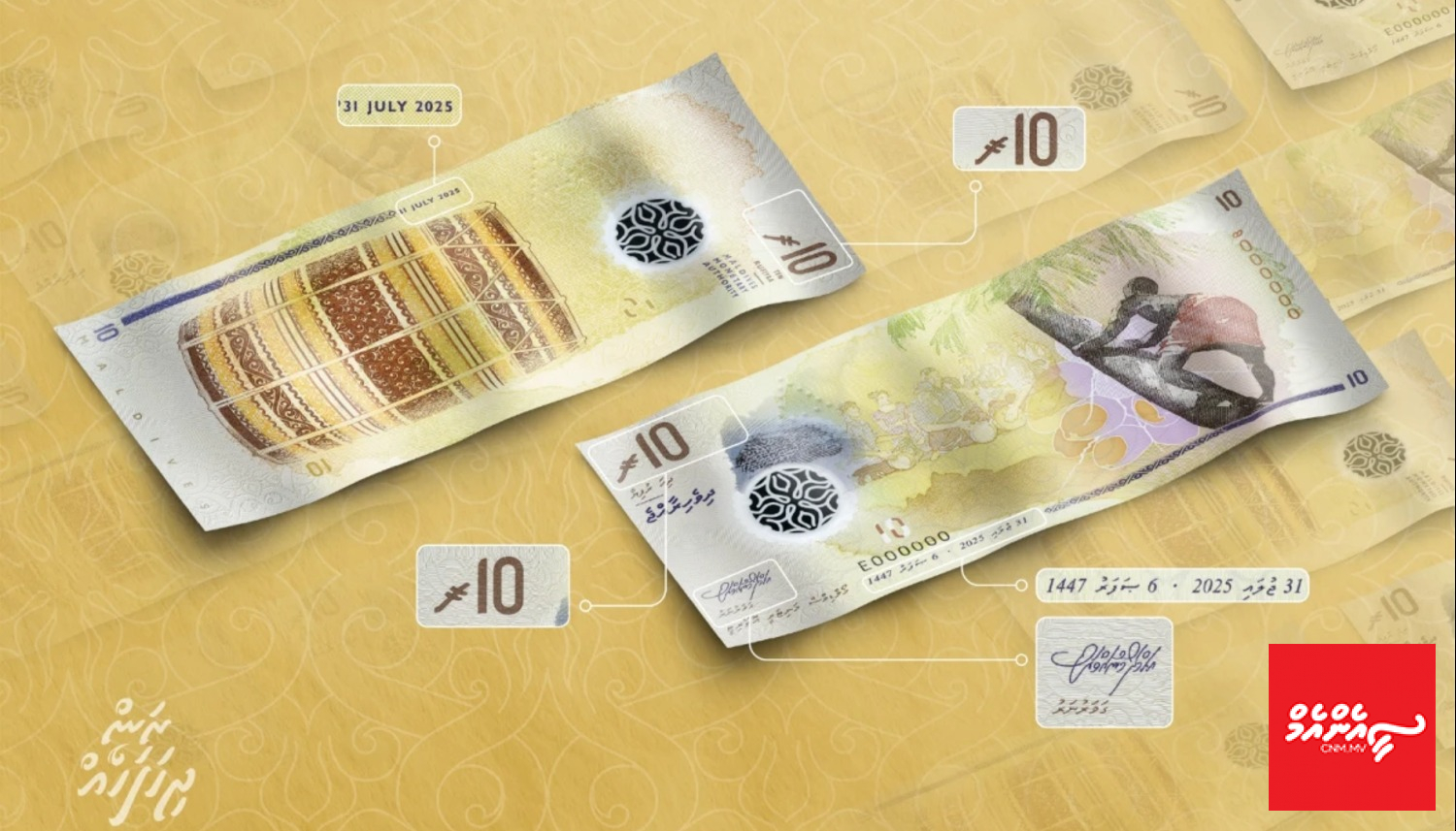 މޯލްޑިވްސް މަނިޓަރީ އޮތޯރިޓީ (އެމްއެމްއޭ) އިން ބުނީ 10ރ. ގެ ނޫޓްގެ އާ ޗާޕެއް ގެނެސްފައިވާތީ އެ ނޫޓް އަންނަ މަހުގެ 1 އިން ފެށިގެން އިގުތިސާދުގެ ތެރޭގައި ދައުރު ކުރަން ފަށާނެ ކަމަށެވެ. މަރުކަޒީ ބޭންކުން ބުނީ 10ރ. ގެ ނޫޓަކީ ދަށް ޑިނޯމިނޭޝަންގެ ނޫޓަކަށްވާތީ ވިޔަފާރީގެ މުއާމަލާތްތަކުގައި މާރުކުރުމަށް އާންމުކޮށް 10ރ. ގެ ނޫޓު ބޭނުންކުރާ މިންވަރު ގިނަ ކަމަށެވެ.