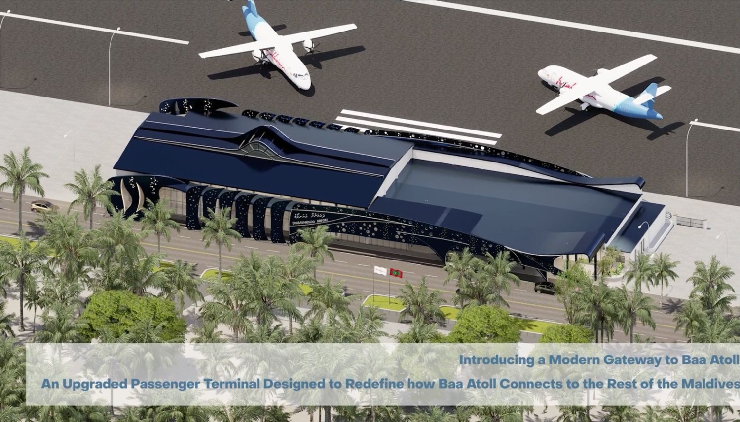 ދަރަވަންދޫ އެއާޕޯޓުގެ އާ ޓާމިނަލް ފަރުމާކޮށްފައިވަނީ ރާއްޖޭގެ ކަނޑުއަޑީގެ ރީތި މަންޒަރުތައް ދައްކުވައިދޭ ފަދަ ޒަމާނީ ފަރުމާއަކަށް