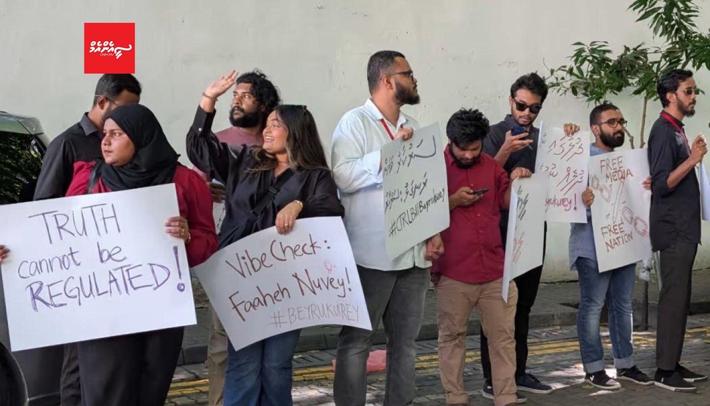 މީޑިއާ ކޮމިޝަނަށް ކުރިމަތިލާން ހުޅުވާލިއިރު އެ ގާނޫނު މަޖިލީހުން ފާސްކޮށް ތަސްދީގު ކުރީ ވެސް އެކަމާ ދެކޮޅަށް ނޫސްވެރިން އަޑުއުފުލަމުން ދަނިކޮށެވެ. ރާއްޖޭގެ ގިނަ މީޑިއާ ތަކެއް ތަމްސީލުކުރާ މޯލްޑިވްސް ޖާނަލިސްޓްސް އެސޯސިއޭޝަން (އެމްޖޭއޭ) ވަނީ މި ގާނޫނަށް އަމަލު ނުކުރާނެ ކަމަށް ބުނެފަ އެވެ. އަދި މި ގާނޫނޫގެ ދަށުން ބާއްވާ އިންތިހާބު ވެސް ބޯއިކޮޓް ކުރާނެ ކަމަށް އެމްޖޭއޭ ވަނީ ބުނެފަ އެވެ.