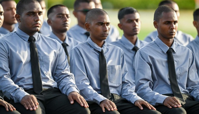މޯލްޑިވްސް ނެޝަނަލް ސާވިސްގެ ފުރަތަމަ ބެޗްގައި ތަމްރީނުވާ ދަރިވަރުންތަކެއް. - ފޮޓޯ: ރައީސް އޮފީސް