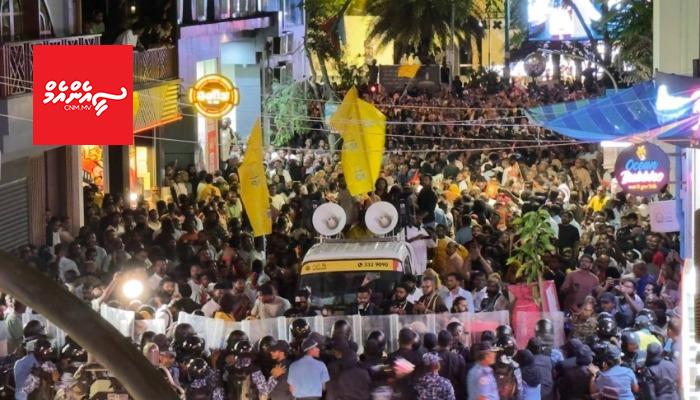 އެތައް ހާސް ބަޔަކާއެކު އެމްޑީޕީގެ އެއްވުން ފެށީ މިރޭ 8:30 ހާއިރު "ލޫޓުވައިފި" ނަމުގައި އާޓިފިޝަލް ބީޗުގަ އެވެ. އެއްވުން ފެށުމުގެ ގޮތުން އެމްޑީޕީގެ އިސް ފަރާތްތަކުން ވާހަކަ ދެއްކިއިރު، އެއަށްފަހު ދެން އެއްވުމުގެ ބައިވެރިން މަޖީދީ މަގުން ދާން ދިމާކުރި ނަމަވެސް ފުލުހުން ވަނީ އެ މަގު ބަންދުކޮށްފަ އެވެ.