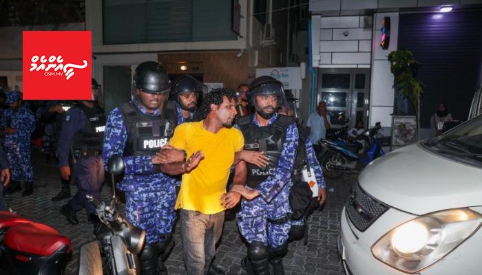 ފުލުހުންގެ ވާޖިބަށް ހުރަސްއެޅި ކަމުގެ ތުހުމަތުގައި 8 މީހަކު ރޭ މުޒާހަރާގެ ތެރެއިން ހައްޔަރުކުރިއިރު، އޭގެތެރެއިން އެކަކު ވަނީ ދޫކޮށްލާފަ އެވެ. އޭނާ ދޫކޮށްލީ ޝަރުތުތަކާއެކު އެވެ. ދެން މުޒާހަރާއިން ހައްޔަރުކުރި މީހުންނަކީ: