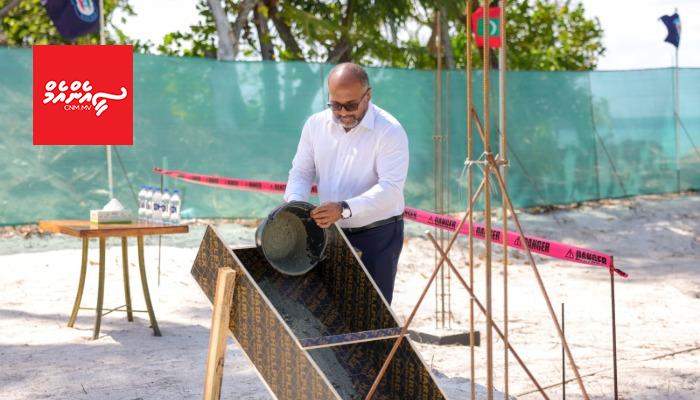 އޮމަދޫގައި ފުލުހުންގެ މަރުކަޒުގެ އައު އިމާރާތުގެ ބިންގާ އަޅުއްވައިދެއްވީ ހޯމްލޭންޑް މިނިސްޓަރު އަލީ އިހްސާންއެވެ.