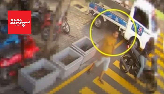 މިކަމާއި ގުޅިގެން ފުލުހުން އާންމުކޮށްފައިވާ ވީޑިއޯ އަކުން ފެންނަނީ ސައިކަލެއްތަކެއް ޕާކް ކޮށްފައި ހުރި ތަނެއްގެ ކައިރީގައި މަޑުކޮށްލައިގެން ހުރި ފިިރިހެނަކު އެތަނުން ސައިކަލެއްގެ މަތީގައި އަތް އަޅުވާލުމާއި އެކު އެ ސައިކަލު އަރި އަޅާލައިގެން ވެއްޓޭ ތަނެ ނެވެ.