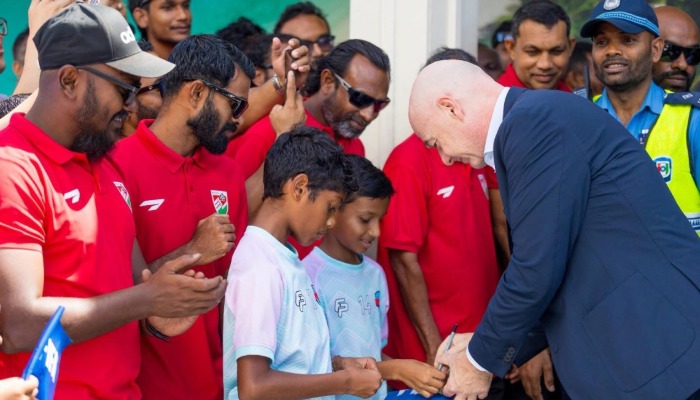 ނަވާރަ އަހަރު ފަހުން ފީފާގެ ރައީސަކު ރާއްޖެއަށް ދަތުރެއް ކުރާއިރު، އެފްއޭއެމުން ވަނީ ރާއްޖޭގެ ފުޓްބޯޅަ އާއިލާގެ މެމްބަރުންނާއި، ފުޓްބޯޅަ އަށް ލޯބިކުރާ މީހުންނާއި، ހެޔޮއެދޭ ފަރާތްތަކައް މި ހަރަކާތުގައި ބައިވެރިވުމަށް ދަނޑަށް އައުމަށް ދައުވަތު ދީފަ އެވެ.