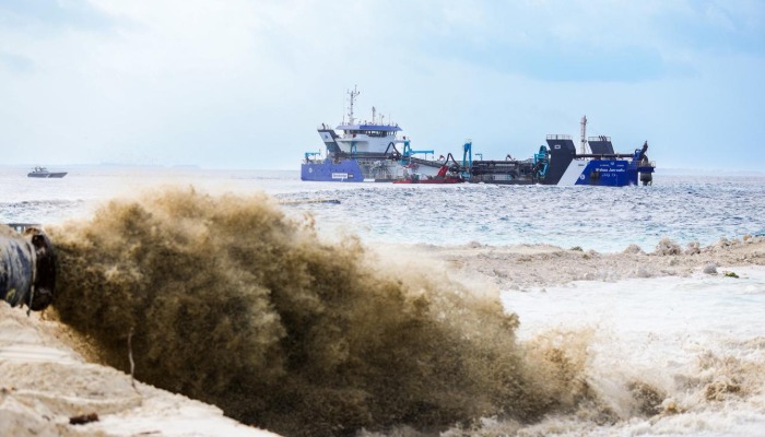 ނައިފަރު ބިން ހިއްކުމުގެ އަމަލީ މަސައްކަތް ރަސްމީކޮށް ފަށާފައިވަނީ ، ރައީސް މުއިއްޒު ޅ.އަތޮޅު މީހުން ދިރިއުޅޭ ރަށްރަށަށް ކުރައްވާ ދަތުރުފުޅުގެ ތެރެއިން އެ ރަށަށް ކުރެއްވި ޒިޔާރަތުގައި ބޭއްވި ރަސްމިއްޔާތެއްގައެވެ.