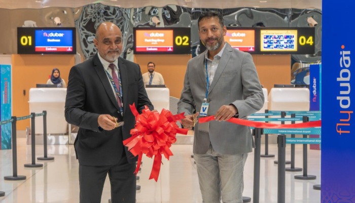 ވީއައިއޭގެ ޓާމިނަލް 1 ނުވަތަ އާ ޓާމިނަލުން ފްލައިދުބާއީ އަށް ހިދުމަތް ދޭން ފެށުން ފާހަގަކުރުމަށް، އެ އެއާލައިނުގެ ފުރަތަމަ ބޯޓަށް ވަނީ ވޯޓާ ސެލިއުޓެއް ދީފަ އެވެ.