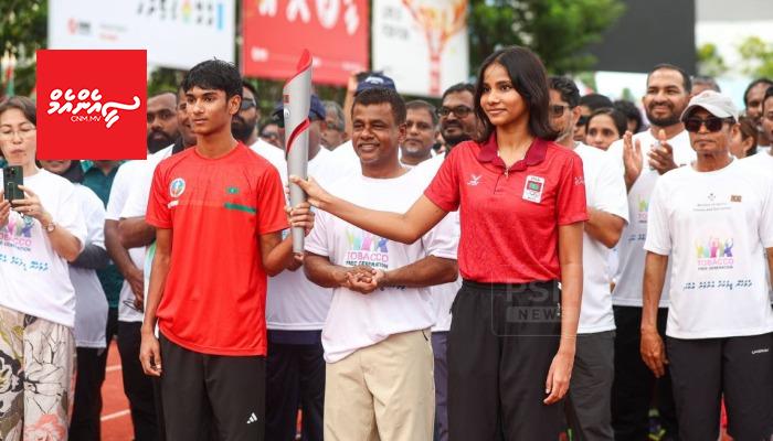 ނެޝެނަލް ޓޯޗް ރަން" މި ނަމުގައި ކުރިއަށްގެންދާ މިދުވުން މިއަދު ހަވީރު 4 އިން މާދަމާ ހަވީރު 4 އަކަށް ކުރިޔަށްދާނެއެވެ. މާފަންނު އެކުވެނި ޓްރެކުގައި 24 ގަޑިއިރަށް ކުރިޔަށްދާ މި ދުވުން ފައްޓަވާ ދެއްވީ ހެލްތު މިނިސްޓަރު އަބްދުﷲ ނާޒިމް އެވެ.