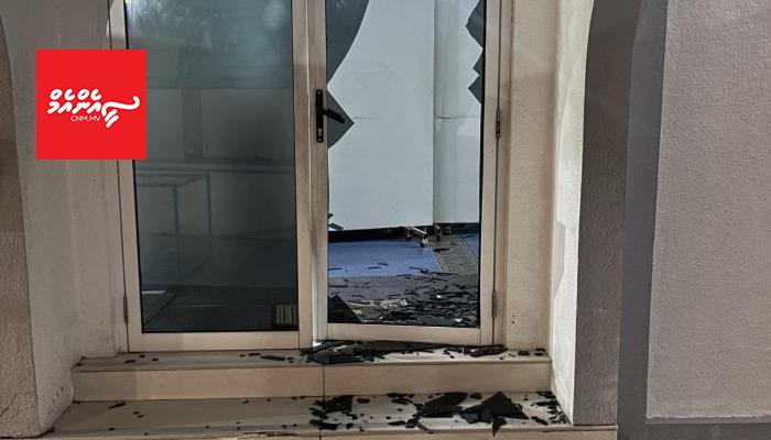 ދޮރަށް ގެއްލުން ދިން ބަޔަކު އެ ދޮރު ހަލާކޮށްލާފައިވަނީ ފޭމަންޓްގައި ބޭނުންކުރާ ގަލެއް އެއްލާ ބިއްލޫރި ގަނޑު ތަޅާލައިގެންނެވެ. އެ ގާގަޑު މިސްކިތުގެ އެެތެރޭގައި އޮތް އިރު އެ ގާ އެއްލުމުގެ ސަބަބުން މިސްކިތުގެ ނަމާދުކުރާ ބައިގެ ބައެއް ތަށިމުށިތައްވެސް ވަނީ ތަޅައިގެންގޮސްފައެވެ.