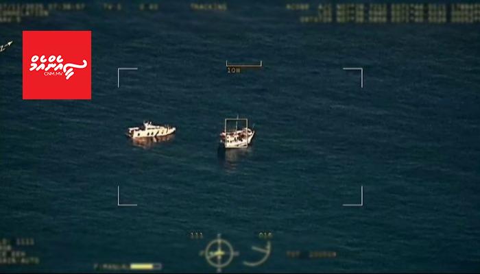 އެމްއެންޑީއެފް އިން މިއަދު ބުނީ، އެމްއެންޑީއެފް އެއާ ކޯއިން ޑްރޯން ބޭނުންކޮށްގެން ހިންގި ސަވެއިލަންސެއްގައި ބޭރުގެ ބޯޓެއް ގާނޫނާ ހިލާފަށް ރާއްޖޭގެ ކަނޑުގެ ސަރަހައްދުގައި ހަރަކާތެރިވާކަން ފާހަގަކުރެވިގެން ކޯސްޓްގާޑު ސްޕެޝަލް ބޯޓް ސްކޮޑްރަނުން އެ ބޯޓާ އިންޓަސެޕްޓްކޮށް އެމްއެންޑީއެފްގެ ބާރުގެ ދަށަށް ގެނެސްފައިވާ ކަމަށެވެ.