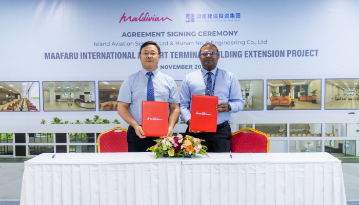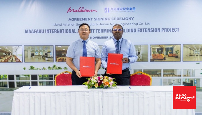 މާފަރު އެއާޕޯޓް ޓާމިނަލް ބޮޑުކުރުމަށް ހަވާލުކުރީ ޗައިނާގެ ހުނާން ކުންފުންޏާއިއެވެ. މިކަމުގެ އެއްބެސްވުމުގައި ސޮއިކުރުމަށް މިއަދު ބޭއްވި ރަސްމިއްޔާތެއްގައި އައިލޭންޑް އެވިއޭޝަންގެ ފަރާތުން އެ އެއްބަސްވުމުގައި ސޮއިކުރެއްވީ އެކުންފުނީގެ މެނޭޖިން ޑިރެކްޓަރު އިބްރާހިމް އިޔާސެވެ. ޗައިނާގެ ހުނާން ކުންފުނީގެ ފަރާތުން އެއްބަސްވުމުގައި ސޮއިކުރެއްވީ އެކުންފުނީގެ ލީގަލް ރެޕްރެޒެންޓޭޓީވް ވަންގް ހީއެވެ.
