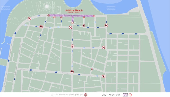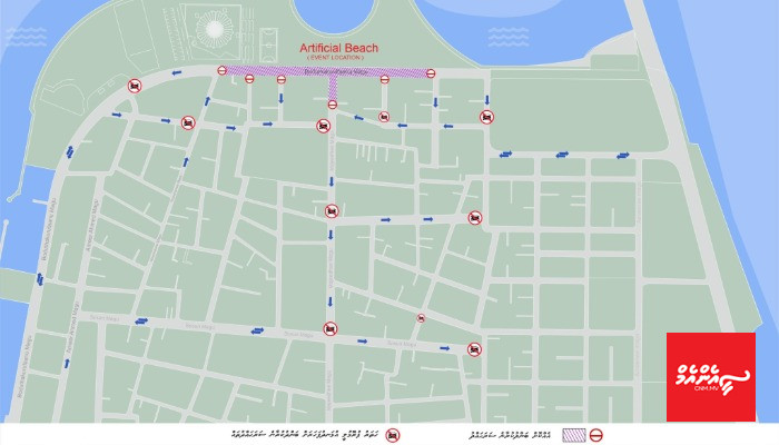 ފުލުހުން ބުނީ އާޓިފިޝަލް ބީޗު ސަރަހައްދުގައި ބޭއްވުމަށް ހަމަޖެހިފައިވާ ހަރަކާތަކާ ގުޅިގެން މިއަދުގެ 18:00 އިން ފެށިގެން ހަރަކާތް ނިމެންދެން އެ ސަރަހައްދުގެ ޓްރެފިކް ފްލޯއަށް ބަދަލު ގެންސްފައިވާކަމަށެވެ.