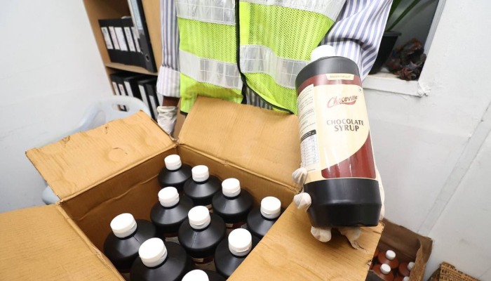 ކަސްޓަމްސްއިން ބުނީ މިތަކެތި އެެތެރެކުރަން އުޅެފައިވަނީ ޗޮކްލެޓް ސިރަޕް ފުޅިތަކެއްގައި ބަންދުކޮށްގެން އެތެރެކުރަން އުޅެނިކޮށެވެ.