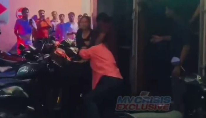 ސޯޝަލް މީޑިއާގައި އާންމުވެފައިވާ ވީޑިއޯ އިން ފެންނަ ގޮތުގައި، ދެ އަންހެނަކު އެކަކު އަނެކަކު ގައިގައި ތަޅައި، ބޮލުގެ އިސްތަށިގަނޑަށް ދަމާއިރު، އެ ދެ މީހުން ހުއްޓުވަން އެހެން މީހުން އުޅެ އެވެ.
