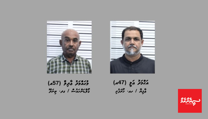 ފުލުހުން ބުނީ މި މައްސަލައާ ގުޅިގެން ހައްޔަރުކޮށްފައިވަނީ ޢާފިޔާ / ހއ. ހޯރަފުށި، އަހުމަދު އަލީ (47އ) އާއި ގޯލްޑަންހައުސް / ގދ. ތިނަދޫ މުހައްމަދު އާދިލް (57އ) ކަމަށެވެ.