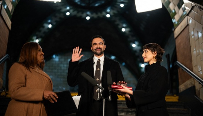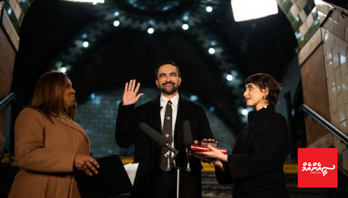 ނިއު ޔޯކަށް 2026 ވަނަ އަހަރު ފެށުނު ވަގުތު މަމްދާނީ މަގާމުގެ ހުވާކުރެއްވީ ސިޓީ ހޯލްގެ ދަށުގައި މިހާރު ބޭނުން ނުކޮށް ދޫކޮށްލާފައިވާ ސަބްވޭ ސްޓޮޕެއްގައި ބޭއްވި ރަސްމިއްޔާތެއްގަ އެވެ.