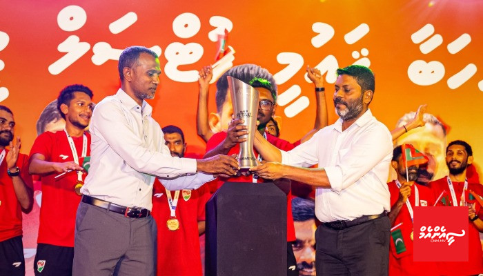 ފުޓްސަލް ޓީމުން ހޯދި ކާމިޔާބު ފާހަގަކުރަން ސްޕޯޓްސް މިނިސްޓްރީން މިރޭ ބޭއްވި ހަރަކާތުގައި ރައީސް މުއިއްޒު އެ ޓީމާ މުހާތަބުކޮށް ވާހަކަފުޅު ދައްކަވާނެ ކަމަށް ކުރިން އޮތީ މިނިސްޓްރީން ބުނެފައެވެ. އެކަމަކު ޓީމަށް މަރުހަބާ ކިޔުމުގެ ހަފްލާގައި ރައީސް ބައިވެރިވެވަޑައިނުގަންނަވައެވެ.