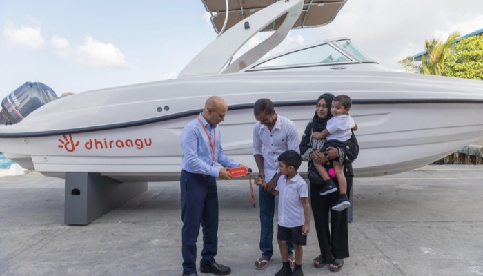 ސ. ފޭދޫއަށް ނިސްބަތްވާ އަބްދުﷲ ސައީދަށް އެ ލޯންޗް ހަވާލުކުރީ ތިލަފުށި ބޯޓްޔާޑުގައި ބޭއްވި ހާއްސަ ހަރަކާތެއްގަ އެވެ. އޭނާ އަށް މި ޕްރޮމޯޝަނުން ލިބުނީ އަލްޝާލީ މެރިން ކެނެރީ 28 މޮޑެލްގެ ސްޕޯޓްސް ސްޕީޑް ލޯންޗެކެވެ. އެއީ ޔަމަހާ 250 ހޯސްޕަވަރުގެ އިންޖީނެއް އަޅާފައިވާ ބޯޓެކެވެ.