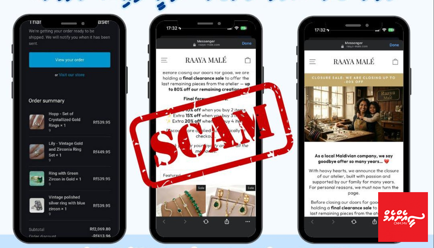 ފުލުހުންގެ އެންޓީ ސްކޭމް ސެންޓަރުން އާއްމުކުރި ތަފާސް ހިސާބުތައް ދައްކާގޮތުން މިދިޔަ މަހު އެކަނިވެސް ސްކޭމްތަކުގައި އޮޅުވާލައިގެން އެކި މީހުން އަތުން 1،76 މިލިއަނަށް ވުރެ ގިނަ ރުފިޔާ ވަނީ ފޭރިގަނެފައެވެ. މީގެތެރެއިން 630،319.15 ރުފިޔާ އަނބުރާ ހޯދުނުކަމަށް ފުލުހުން ބުނެެއެވެ.