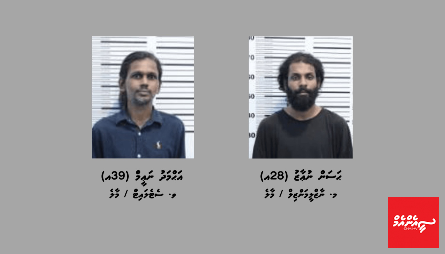 މި މައްސަލައާ ގުޅިގެން ހައްޔަރުކޮށްފައިވަނީ މ. ނާޒްލީމަންޒިލް / މާލެ، ހަސަން ނުއާޒު (28އ) އާއި ވ. ސެޓެލައިޓް / މާލެ، އަހުމަދު ނަޢީމް (39އ) އެވެ. އެމީހުންގެ ބަންދާމެދު ގޮތެއް ނިންމުމަށް ކޯޓަށް ހާޒިރު ކުރުމުން 15 ދުވަހަށް ބަންދު ކުރުމަށް ވަނީ އަމުރުކޮށްފަ އެވެ.