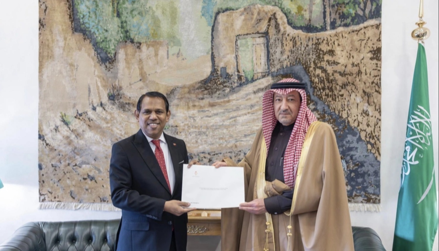 ސައުދީ އަރަބިއްޔާގެ ވެރިރަށް ރިޔާލުގައި ހުންނަ އެ ގައުމުގެ ފޮރިން މިނިސްޓްރީގައި އިއްޔެ ބޭއްވި ބައްދަލުވުމެއްގައި، ރައީސްގެ މި ސިޓީފުޅު ސައުދީ ސަރުކާރާއި ހަވާލުކޮށްދެއްވީ ރާއްޖެ އިން ސައުދީ އަރަބިއްޔާއަށް ކަނޑައަޅުއްވާފައި ހުންނަވާ ސަފީރު އަޙްމަދު ސަރީރެވެ. މި ސިޓީފުޅާ ސައުދީ ސަރުކާރުގެ ފަރާތުން ހަވާލުވެވަޑައިގަތީ ސައުދީގެ ވައިސް މިނިސްޓާ އޮފް ފޮރިން އެފެއާޒް ވަލީދު އަލްހުރައިޖީ އެވެ.