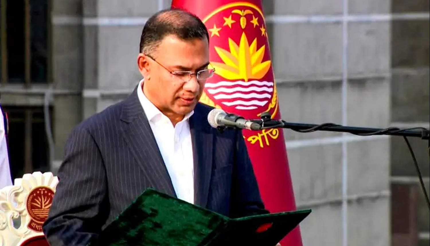 ބަންގްލަދޭޝްގެ އައު ބޮޑުވަޒީރަށާއި ކެބިނެޓުގެ މެންބަރުންނަށް މަޤާމުގެ ހުވާ ލައިދެއްވީ، ބަންގްލަދޭޝްގެ ރައީސް، މުހައްމަދު ޝަހާބުއްދީން އެވެ. މި ރަސްމިއްޔާތުގައި އަވަށްޓެރި އަދި ރަޙުމަތްތެރި ގައުމުތަކުގެ އިސްވެރިން ބައިވެރިވެ ވަޑައިގެންނެވި އެވެ.