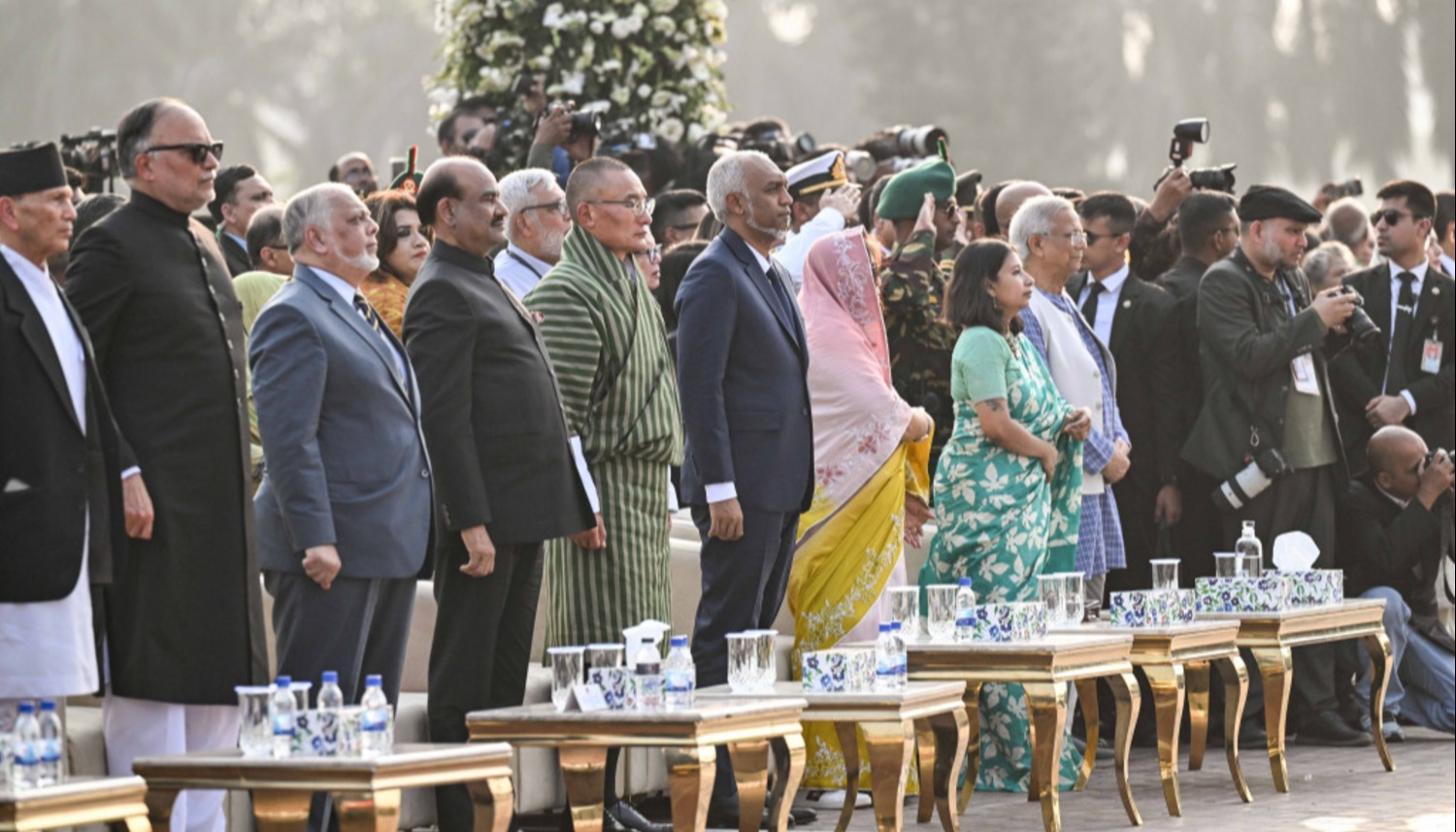 މި ރަސްމިއްޔާތުގައި އަވަށްޓެރި އަދި ރަޙުމަތްތެރި ގައުމުތަކުގެ އިސްވެރިން ބައިވެރިވެވަޑައިގެންނެވި އެވެ. ބަންގްލަދޭޝްއަށް އަލަށް އިންތިހާބުވެވަޑައިގަތް ބޮޑުވަޒީރު، ތޯރިގު ރަހްމާންގެ މަގާމުގެ ހުވާ ކުރެއްވުމުގެ ރަސްމިއްޔާތުގައި ބައިވެރިވެވަޑައިގަތުމަށް ފަހު ރައީސް މުއިއްޒު ވަނީ ބޮޑުވަޒީރާ ބައްދަލުކުރައްވައިފަ އެވެ.