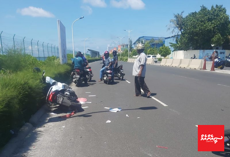 ފުލުހުން ބުނީ ރޭ ހައިވޭގައި އެކްސިޑެންޓް ހިނގީ މާލެއިން ހުޅުމާލެއަށް ދަތުރުކުރި ދެ ސައިކަލެއް ޖެހިގެންކަމަށެވެ.