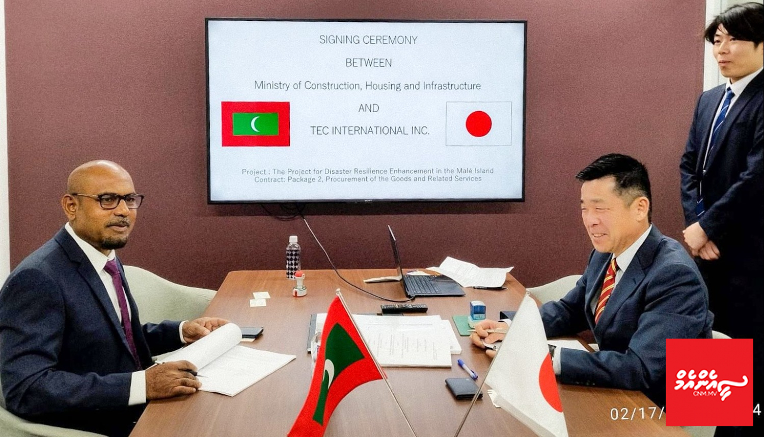 ޖަޕާނު ސަރުކާރުގެ އިކޮނޮމިކް އެންޑް ސޯޝަލް ޑިވެލޮޕްމަންޓް ޕްރޮގްރާމުގެ ދަށުން ކުރިއަށް ގެންދިއުމަށް ހަމަޖެހިފައިވާ ޕްރޮޖެކްޓް ފޯ ޑިޒާސްޓަރ ރެޒިލިއެންސް އެންހޭންސްމަންޓް އިން މާލެ އައިލެންޑް (ކޮންސްޓްރަކްޝަން ފޭސް) – ޕެކޭޖް 02 ގެ އެއްބަސްވުމުގައި އިންފްރާސްޓްރަކްޗާ މިނިސްޓްރީގެ ފަރާތުން ސޮއިކުރެއްވީ ސްޓޭޓް މިނިސްޓަރު ހަސަން ރަޝީދެވެ. އަދި ޓެކް އިންޓަނޭޝަނަލް އިންކޯޕަރޭޝަންގެ ފަރާތުން ސޮއިކުރެއްވީ އެ ކުންފުނީގެ ޑިރެކްޓަރު މަކޯޓޯ ޔޮކޮށީ އެވެ.