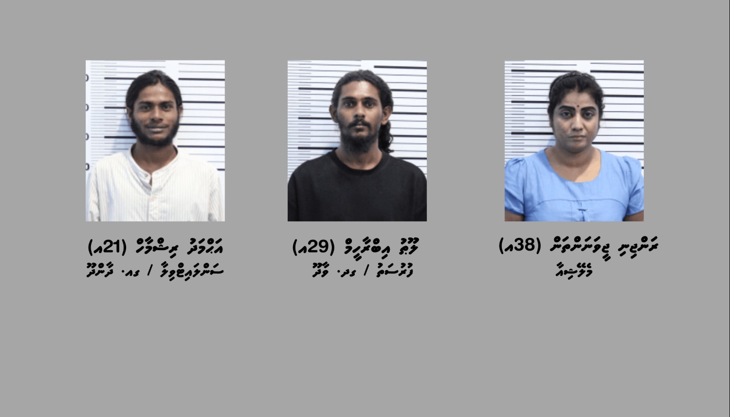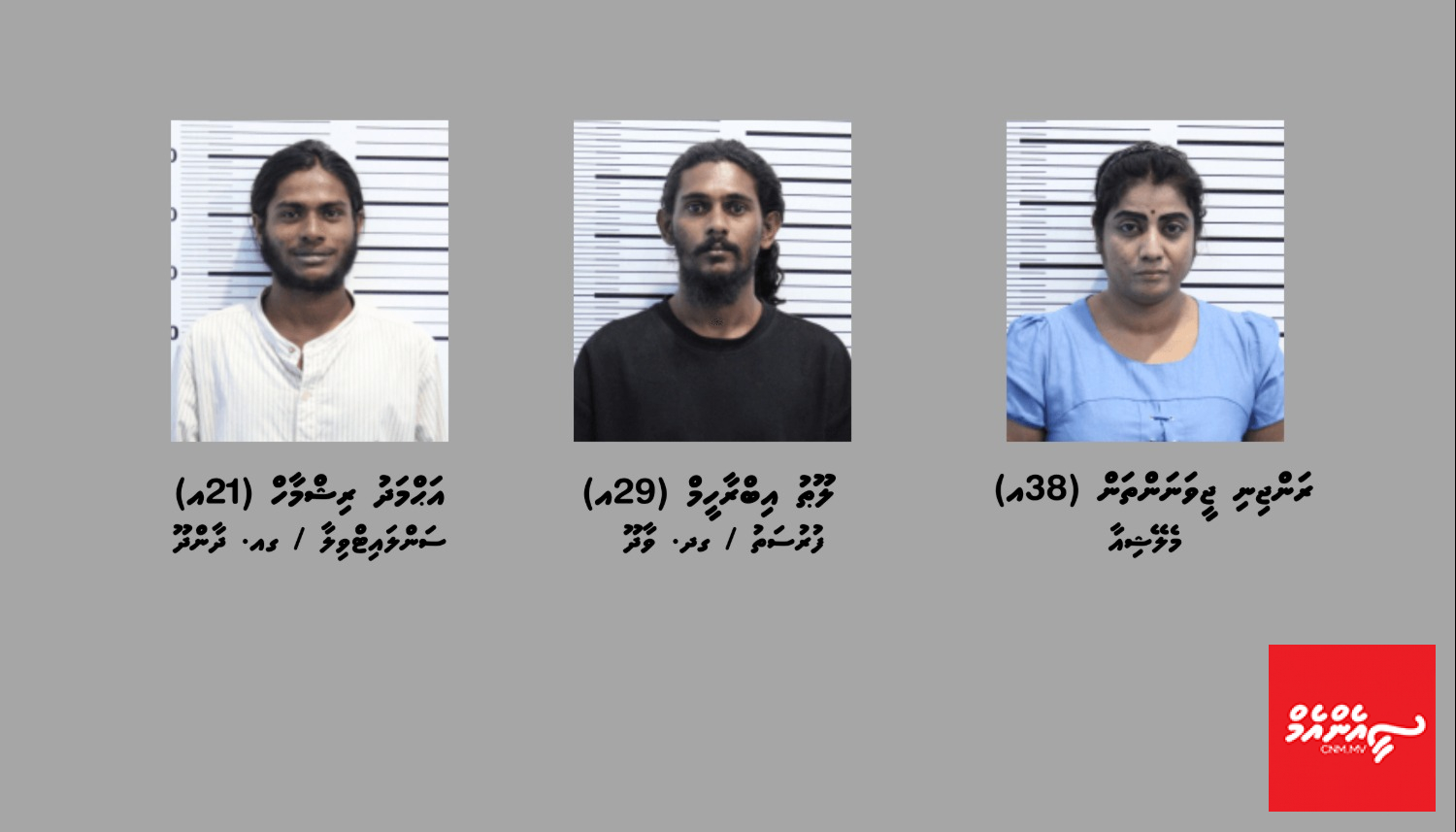 ފުލުހުން ބުނީ މި މައްސަލައާ ގުޅިގެން ހައްޔަރުކޮށްފައިވަނީ ރަންޖިނި ޖީވަނަންތަން، މެލޭޝިއާ، (38އ) އާއި ގދ. ވާދޫ / ފުރުސަތު، ލޫތު އިބްރާހީމް (29އ) އާއި ގއ. ދާންދޫ / ސަންލައިޓްވިލާ، އަހްމަދު ރިޝްމާހް (21އ) އެވެ. މި ތިންމީހުންގެ ތެރެއިން ރަންޖިނި ޖީވަނަންތަން ހައްޔަރުކޮށްފައިވަނީ ވެލާނާ އިންޓަނޭޝަނަލް އެއާޕޯޓުންނެވެ. ލޫތު އިބްރާހީމްއާއި އަޙްމަދު ރިޝްމާހް ހައްޔަރުކޮށްފައިވަނީ މާލެއިންނެވެ.
