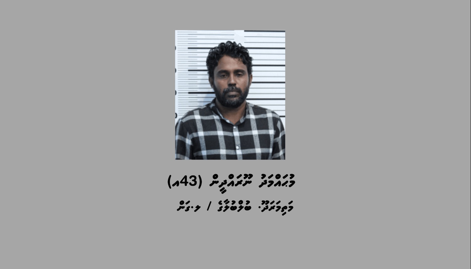 ފުލުހުން ބުނި ގޮތުގައި މި އަމުރާ ގުޅިގެން ހޯދަމުންދަނީ މަތިމަރަދޫ. ބުލްބުލާގެ / ލ.ގަން، މުޙައްމަދު ނޫރައްދީން (43އ) އެވެ.