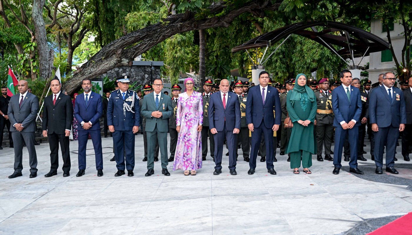 މިއަދު ފާހަގަކުރަމުން އަންނަ 37 ވަނަ ނަސްރުގެ ދުވަހުގެ މުނާސަބަތުގައި ނޮވެމްބަރު 3 ގެ ހަނދާނީ ބިނާގައި ބޭއްވި ދިދަ އާއި ގާޑް މައުންޓް ކުރުމުގެ ރަސްމިއްޔާތުގައި ރައީސް އަދި ސިފައިންގެ އެންމެ މަތީވެރިޔާ ޑރ. މުހައްމަދު މުއިއްޒާއި ޗީފް އޮފް ޑިފެންސް ފޯސް މޭޖަ ޖެނެރަލް އިބްރާހިމް ހިލްމީ އާއި ސިފައިންގެ އިސް އޮފިސަރުންނާއި ސަރުކާރުގެ ބައެއް އިސްވެރިން ބައިވެރިވެވަޑައިގެންނެވި އެވެ. އަދި ސިފައިންގެ ހިދުމަތުން ރިޓާޔާ ކުރައްވާފައިވާ ބައެއް ބޭފުޅުން ވެސް ބައިވެރިވެ ވަޑައިގެންނެވި އެވެ. ނަސްރުގެ ދުވަހުގެ ގޮތުގައި ފާހަގަކުރަނީ ނޮވެމްބަރު 3، 1988 ގައި ރާއްޖެއަށް ދިން އުދުވާނީ ހަމަލާގައި ސިފައިން ހޯދި ކާމިޔާބީ ފާހަގަ ކުރުމުގެ ގޮތުންނެވެ. އެ ހަމަލާގައި ސިފައިންނާއި އާންމުންގެ ތެރެއިން ބައެއް މީހުން ޝަހީދުވި އެވެ.