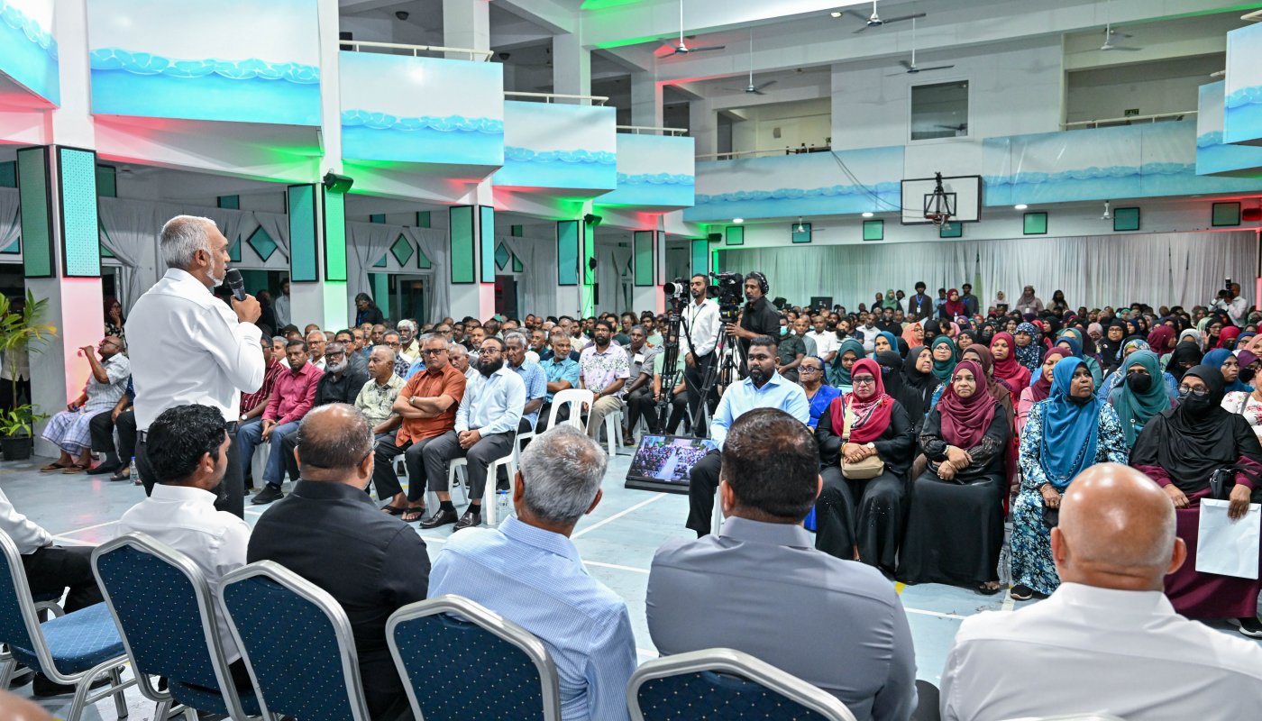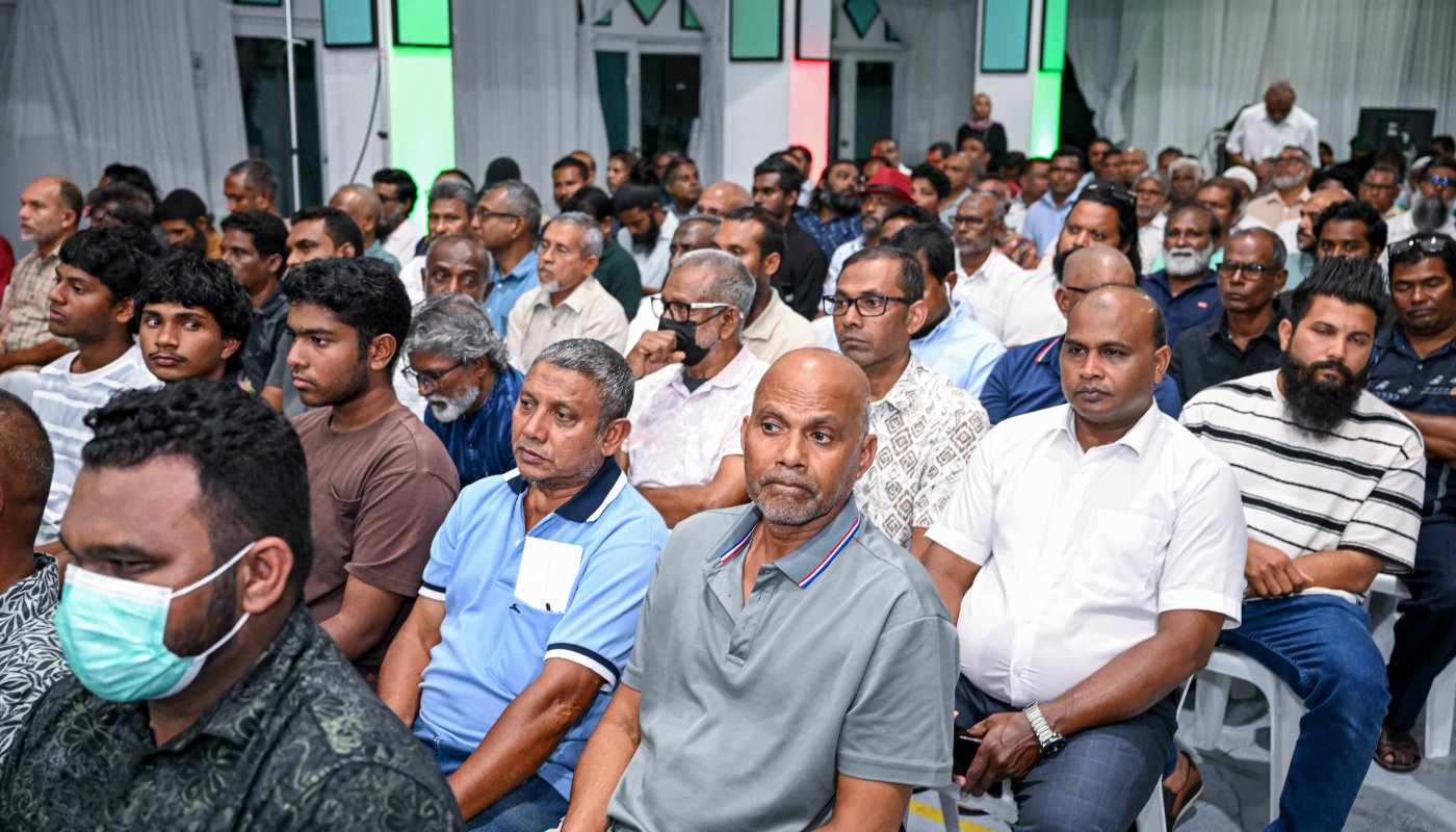 މާލޭގެ ރައްޔިތުންނާ ބައްދަލު ކުރެއްވުމަށް ބާއްވަމުންދާ ސިލްސިލާ ބައްދަލުވުމުގެ ތެރެއިން ހުޅުމާލެ 1 ގައި ދިރިއުޅޭ ރައްޔިތުންނާ ރައީސް ޑރ. މުހައްމަދު މުއިއްޒު ބައްދަލު ކުރެއްވުމަށް ރެހެންދި ސްކޫލް ހޯލުގައި ބޭއްވި ޖަލްސާ: ރައީސް ގެންދަވަނީ މިދިޔަ މަހުގެ 23 ވަނަ ދުވަހުން ފެށިގެން މާލޭގެ ހުރިހާ އަވަށްތަކުގެ ރައްޔިތުންނާ ބައްދަލު ކުރައްވަމުން. އެ ބައްދަލުވުންތަކުގައި ރައްޔިތުންގެ ސުވާލާއި ހިޔާލު ހުށަހެޅުމުގެ ފުރުސަތު ދަނީ ދެމުން، ރައީސް މިފަހުން ވަނީ ކުދި އަދި މެދުފަންތީގެ ވިޔަފާރިވެރިންނާއި ވެސް ބައްދަލުކުރައްވާފަ