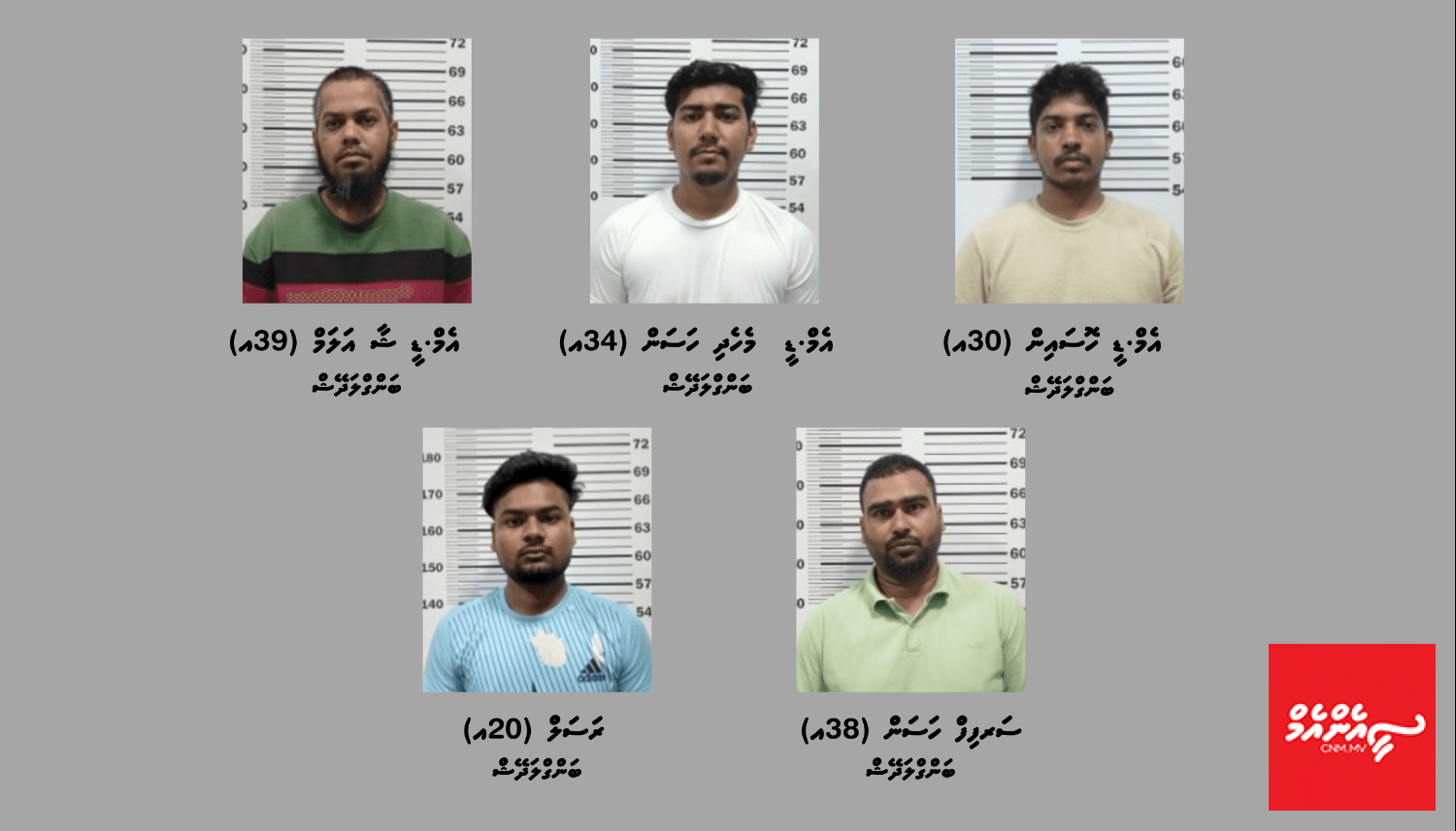 މި މައްސަލައާ ގުޅިގެން، ބަންގްލަދޭޝްއަށް ނިސްބަތްވާ ފަސްމީހުން ވަނީ ހައްޔަރުކޮށްފައެވެ. އެއީ، އެމް.ޑީ ހޮސައިން (30އ) އާއި އެމް.ޑީ މެހެދި ހަސަން (34އ) އާއި އެމް.ޑީ ޝާ އަލަމް (39އ) އާއި ސަރފިފް ހަސަން (38އ) އާއި ރަސަލް (20އ) އެވެ.